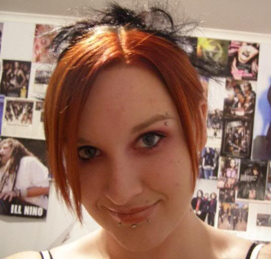 | suicide silence Joining The Black Parade Age: - Gender: Female Posts: 224 | i have my ears pierced 3 on each side...i wanna get to more on my ears and my tounge,nose,and lip and MAYBE my eyebrow...lol |
